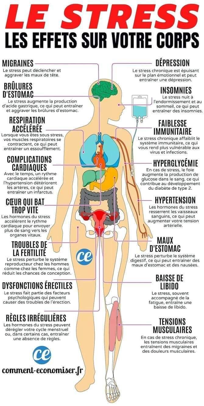 Quand je vois cette image avec l'impacte du stress sur le corps, je réalise à quel point le stress peut mettre dans des situations difficiles.